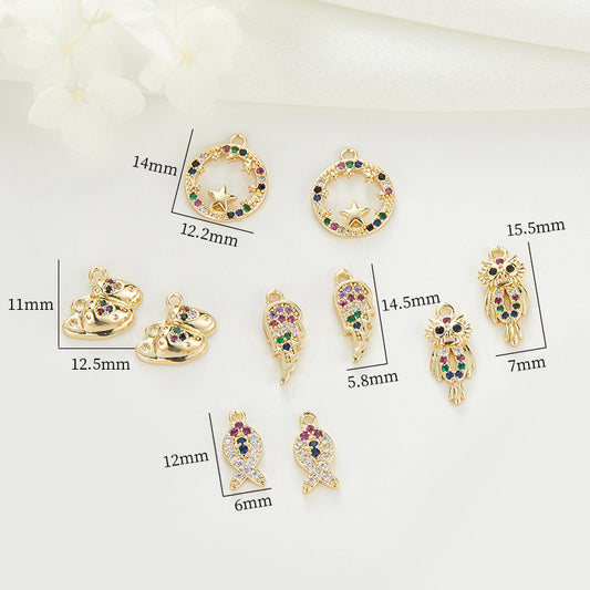 2 Fische Schmetterling Flügel Eule Stern Kreis Charm Anhänger Strass verziert 14K GF