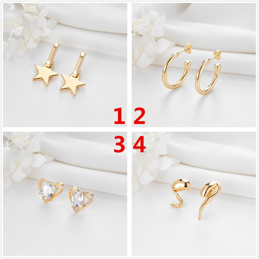 4-Sterne-Charm-Ohrstecker mit offenem Kreis, schmelzendes Herz, 14-Karat-GF-Strassverzierung