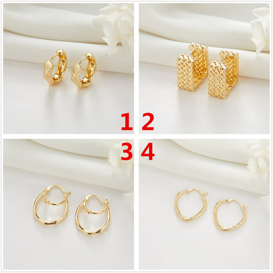 4 gezwirnte, runde, klobige Creolen aus 14-karätigem GF
