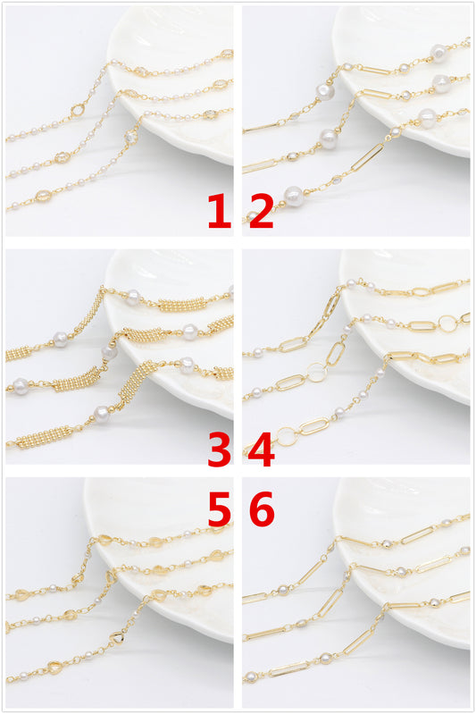 2 Meter lange Herz-Gliederkette mit 14-karätigem GF-Strass und Perlenverzierung