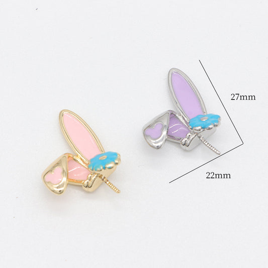 2 Kaninchen-Charm-Anhänger, Emaille, Epoxidharz, 14 K GF, halbgebohrte Perle, Rohling