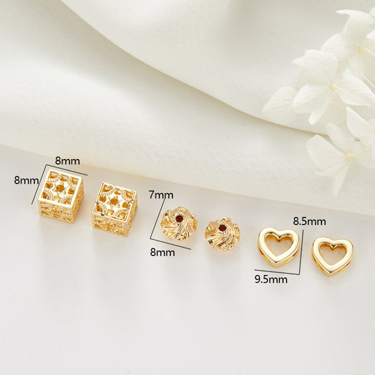 10 kleine Herz-Blumen-Hohlwürfelperlen 14K GF Charm Beadwork Spacer