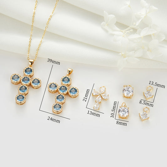 2 runde, quadratische Stein-Kreuz-Charm-Anhänger, mit Strasssteinen verziert, 14 Karat GF