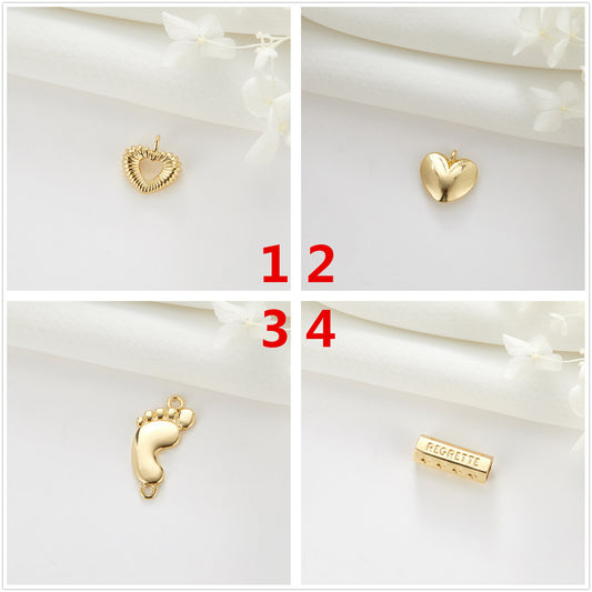 2 glänzende, gezwirnte Herz-Fuß-Sechskant-Pfeifen-Charm-Anhänger aus 14-karätigem GF