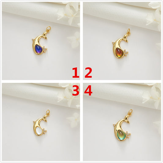 2 Delphin-Charm-Anhänger, Harz, Strass, verziert mit 14-karätigem GF