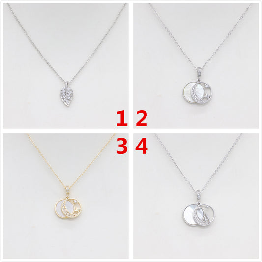 2-Blatt-Mond-Stern-Charm-Kabelketten-Halskette mit Strassverzierung aus 14-karätigem GF-Choker