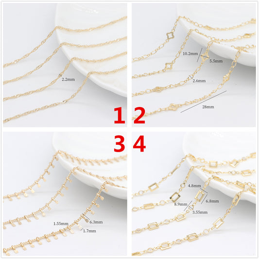 2 Meter lange, gebogene, flache, rechteckige Gliederkabelkette aus 14-karätigem GF