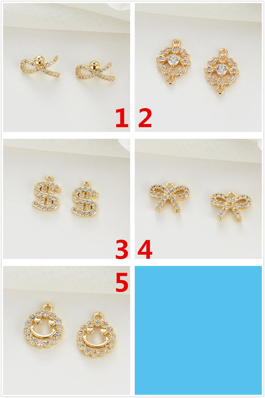 2 Schleife Blumen Geld Lächeln Gesicht Charm Anhänger Strass verziert 14K GF