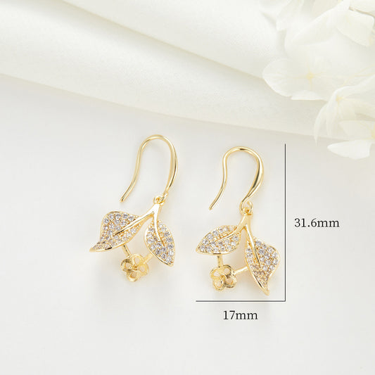 4-Blatt-Hakenohrringe aus 14-karätigem GF, halbgebohrte Perlenrohlinge