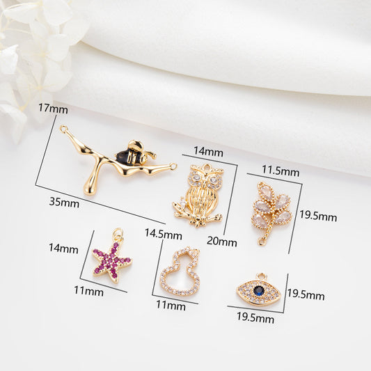 2-Augen-Zweig-Eulenblatt-Kürbis-Seestern-Charm-Anhänger mit Strasssteinen verziert, 14-karätiges GF