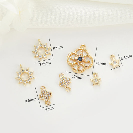 2 vierblättriges Kleeblatt, Sonnenstern, Charm-Anhänger, mit Strasssteinen verziert, 14 Karat GF