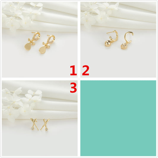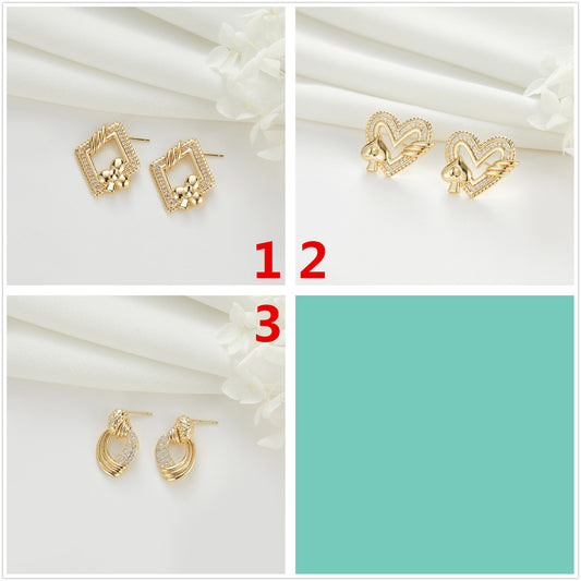 4 quadratische Herz-Oval-Kreis-Ohrstecker, 14-Karat-GF-Strassverzierung