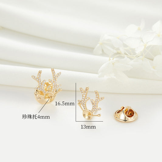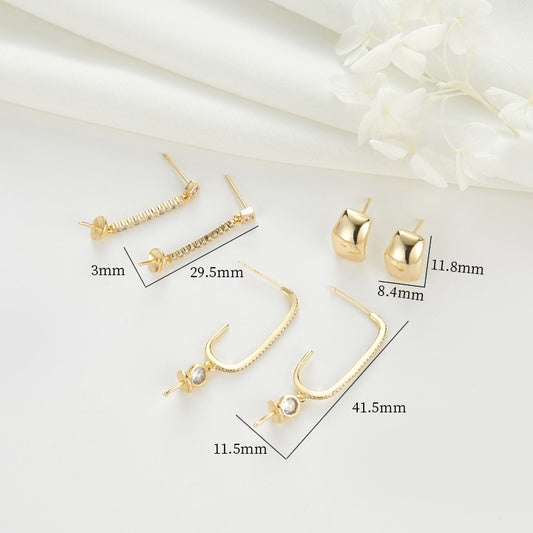 4 glänzende Ketten-Ohrstecker aus 14-karätigem GF, halbgebohrte Perlenrohlinge