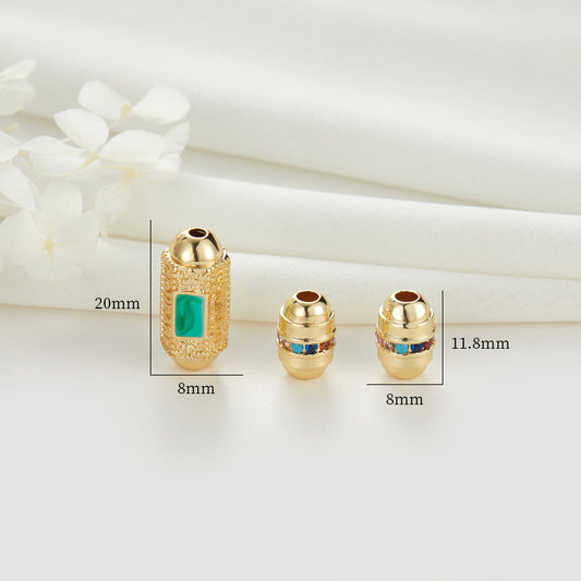 2 winzige olivfarbene Säulenperlen aus 14-Karat-GF-Charm mit Strassverzierung, Perlenarbeit, Abstandshalter