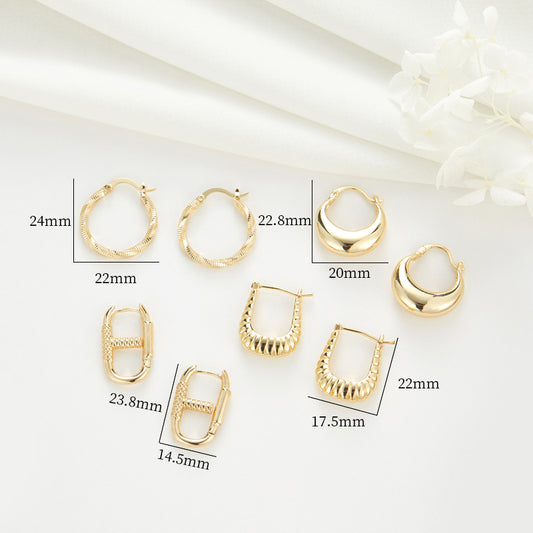 4 rechteckige, mit Draht umwickelte, kreisförmige, klobige Creolen aus 14-karätigem GF
