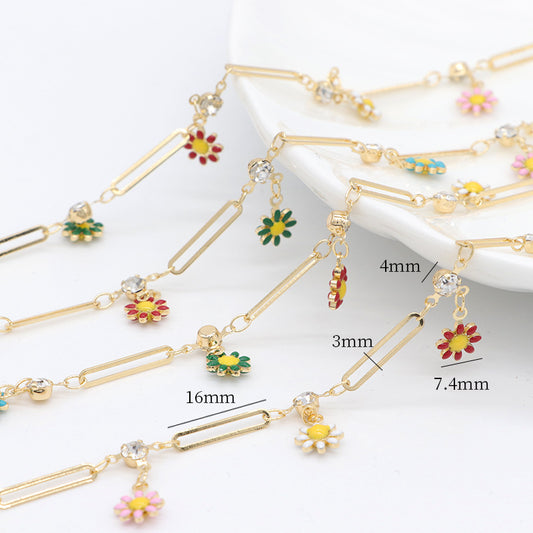 2 Meter Emaille-Epoxidharz-Gänseblümchen-Blumen-Charm, lange Kabelkette, 14 K GF