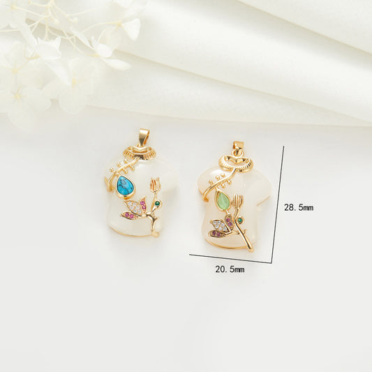 2 chinesische Mädchen-Bluse-Charm-Anhänger, Harz, Strass, verziert, 14 K GF