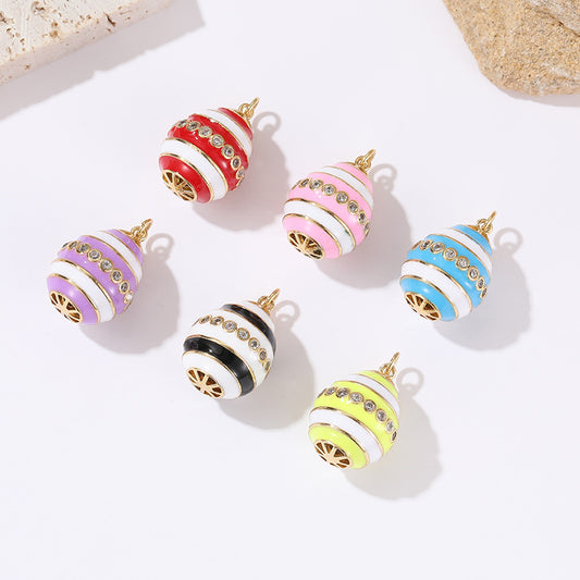 2 Ring Kreis Osterei Charm Anhänger Emaille Epoxid Strass 14K GF