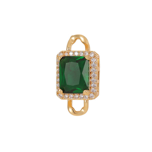 2 ovale, herzförmige, olivgrüne, quadratische Wassertropfen-Klauenkettenglieder-Verbindungsstücke mit Strassverzierung aus 14-karätigem GF