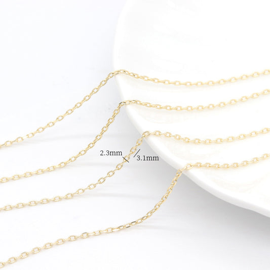 2 Meter flache, dünne O-Link-Kabelkette aus 14-karätigem GF