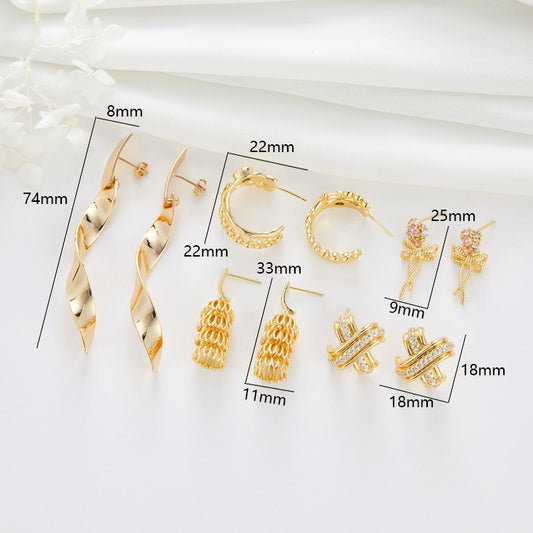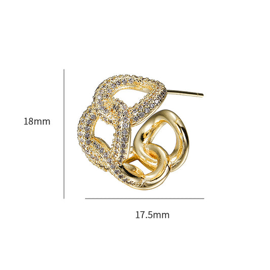 4 halbkreisförmige klobige Kabelketten-Ohrstecker mit Strassverzierung aus 14-karätigem GF