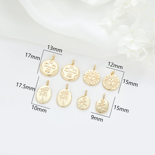 2 Charm-Anhänger mit floralem Sonnengesichtsanhänger, 14 Karat GF