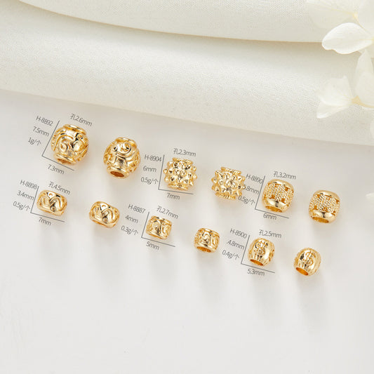 10 kleine florale Geldtrommel-Säulenperlen 14K GF Charm Beadwork Spacer