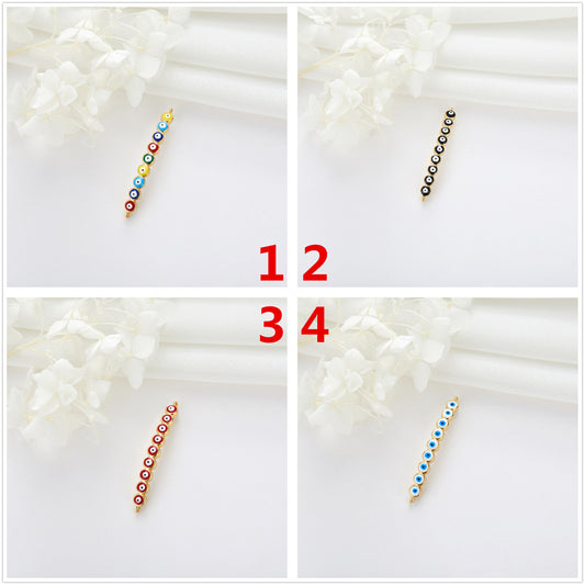 2 Double Looped Evil Eye Bent Stick Bar Charm Connector 14K GF