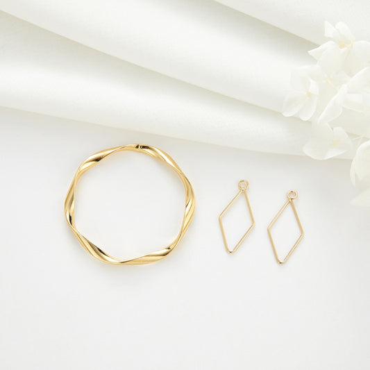 4 Wire Wrapped One/Double Looped Faceted Flat Roundelle Rhinestone Bead Charm Connector 14K GF