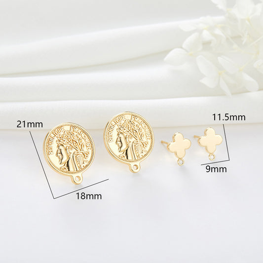 4 glänzende Kreuz-Ohrstecker mit Öse aus 14-karätigem GF