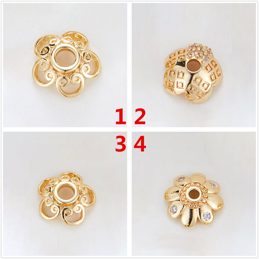 10 florale Perlenkappen-Cup-Strassverzierungen aus 14-karätigem GF-Charm, Perlenarbeit, Abstandshalter