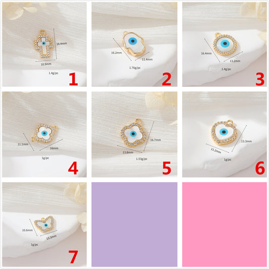 2 Kreuz Hand Rundes Auge Blumen Herz Schmetterling Charm Anhänger Harz Strass verziert 14K GF