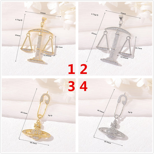 2 Waage Balance Saturn Pin Charm Anhänger Strass verziert 14K GF