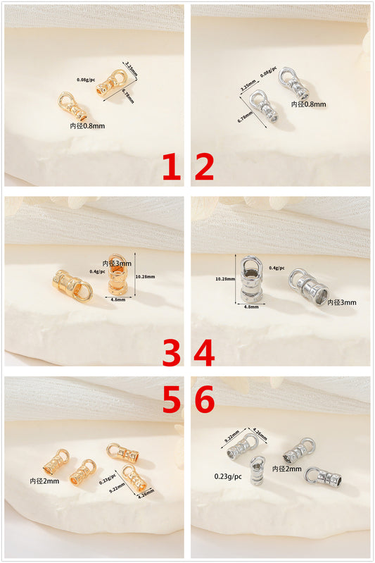 10 kleine hohle runde Kordelenden aus dünnem Leder, 14K GF