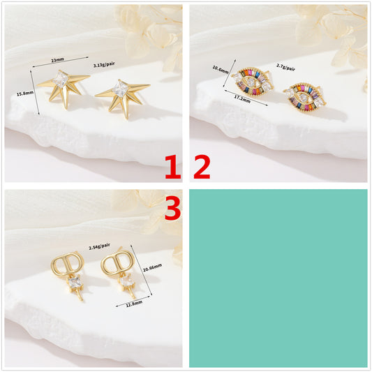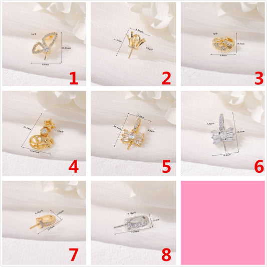 4 herzförmige, ovale, runde, quadratische Ohrstecker mit Strassverzierung, 14K GF-Ohrring, halbgebohrte Perle, Rohling