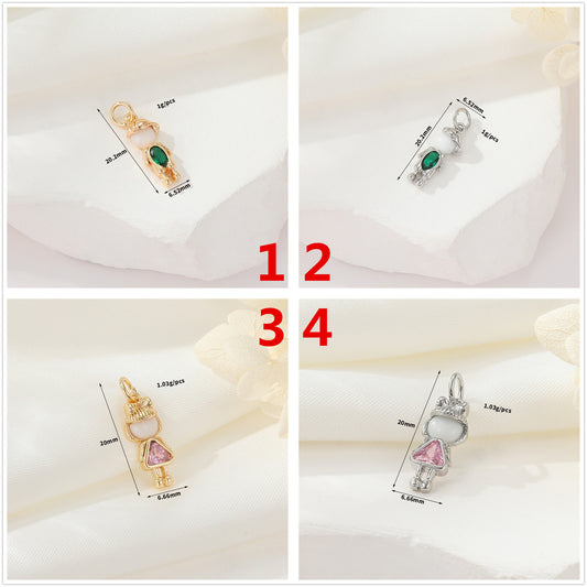 2 Charm-Anhänger für Jungen und Mädchen, mit Strasssteinen verziert, 14 Karat GF