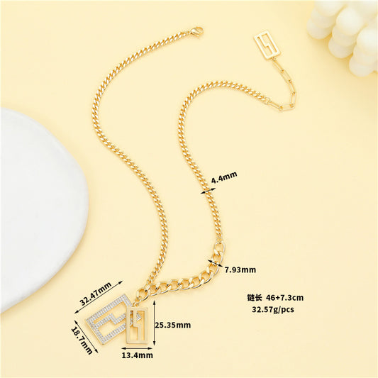 2 rechteckige Flash-Charm-Kabelkettenhalsketten mit Strassverzierung aus 14-karätigem GF-Halsband mit Verlängerung