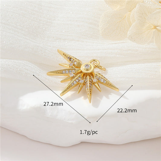 2 Schmetterlingskrone, Blumen-Stern-Charm-Anhänger, Strassverzierung, 14K GF, halbgebohrte Perle, Rohling
