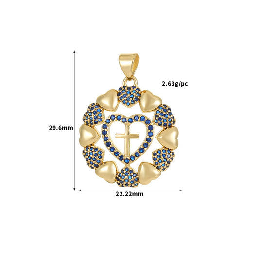 2 runde Kreuz-Herz-Charm-Anhänger mit Strassverzierung aus 14-karätigem GF