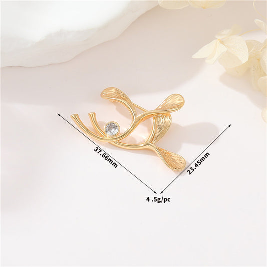 2 Ginkgoblatt-Brosche, 14 K GF-Strass verziert