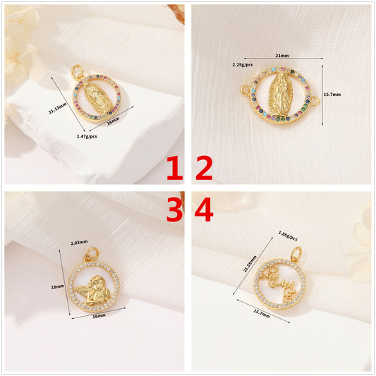 2 Jesus Amor Mama Sonne Schlange Charm Anhänger Strass verziert 14K GF