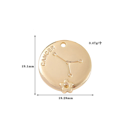 2 runde Sternzeichen-Charm-Anhänger aus 14-karätigem GF