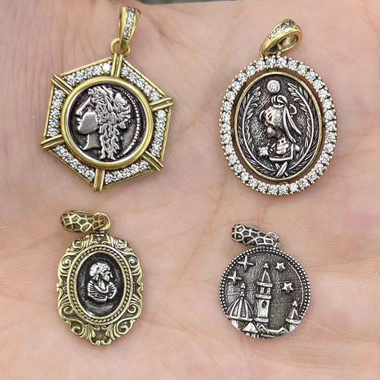 2 Vintage Portrait Münzanhänger Anhänger 14K GF