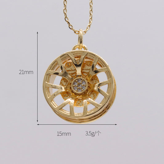 2 hohle runde Radnaben-Charm-Anhänger mit Strasssteinen verziert, 14 Karat GF