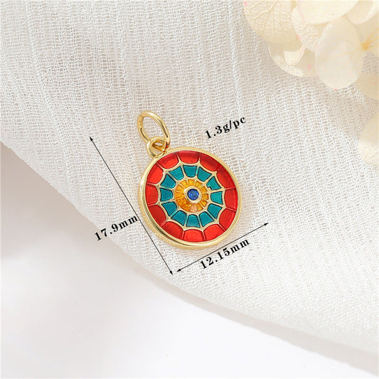 2 Spinnennetz-Charm-Anhänger, Emaille, Epoxidharz, 14 K GF, Strass verziert