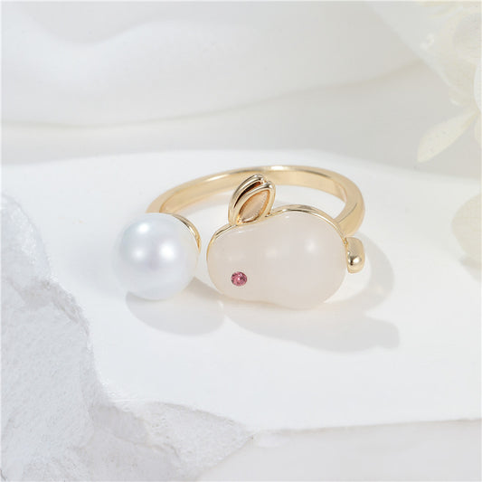 2 Statement-Ringe mit offenem Kreis aus Kunstharz und Hasenmotiv, mit Strasssteinen verziert, 14-karätiges GF