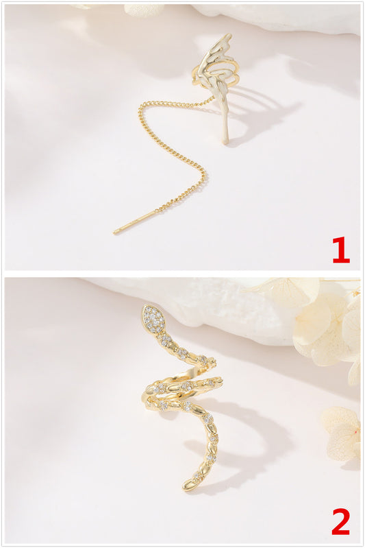 4 Emaille-Epoxidharz-Wolken-Ohrklemmen mit Strasssteinen, verzierte Schlangen-Ohrklemmen, Kletterer, kein Piercing, 14-karätiges GF-Ohrring