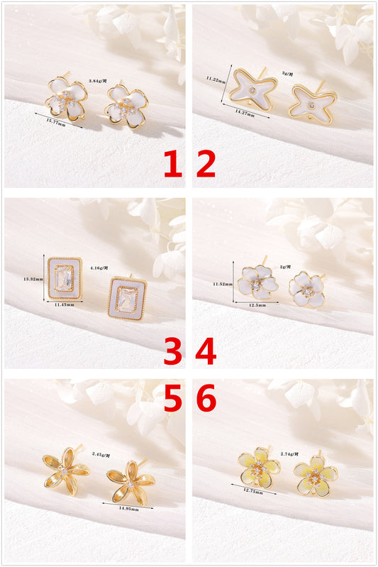 4 florale Ohrstecker mit Öse, 14-karätige GF-Muschel-Strassverzierung