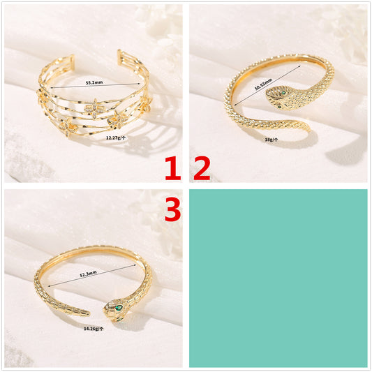 2 offener, kreisförmiger, floraler Schlangen-Armreif mit Strassverzierung aus 14-karätigem GF-Armband