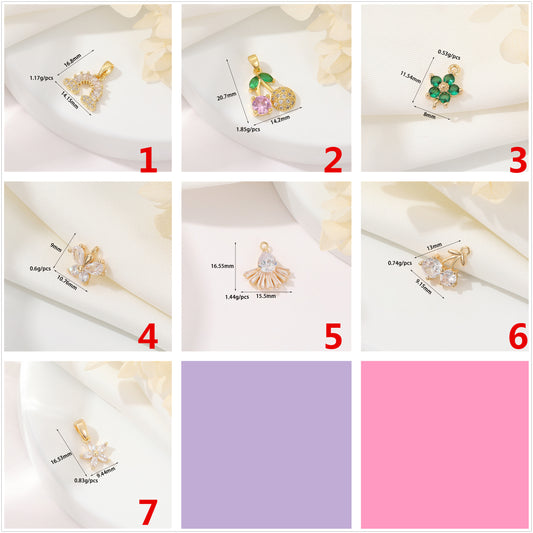 2 halbkreisförmige Kirschblüten-Schmetterlings-Fächer-Charm-Anhänger mit Strass verziert, 14 Karat GF